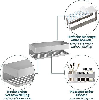 ✅ Ruimtebesparend gebruik: de badkamerplanken en -planken hebben niet veel ruimte nodig. Ze bieden voldoende ruimte voor alle belangrijke badkameraccessoires. De houder kan voor de douche worden gebruikt om shampoo, douchegel enz. op te bergen. De badkamerplank is ook universeel inzetbaar en is ook geschikt voor de keuken of andere ruimtes.