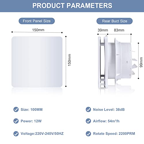 Specification: FanGoFast Badkamerventilator, 100 mm, afzuigventilator, stil met terugloopklep, 12 W, krachtige wandventilator, ventilator voor keuken, badkamer, kas, garage (type 100B, wit)
