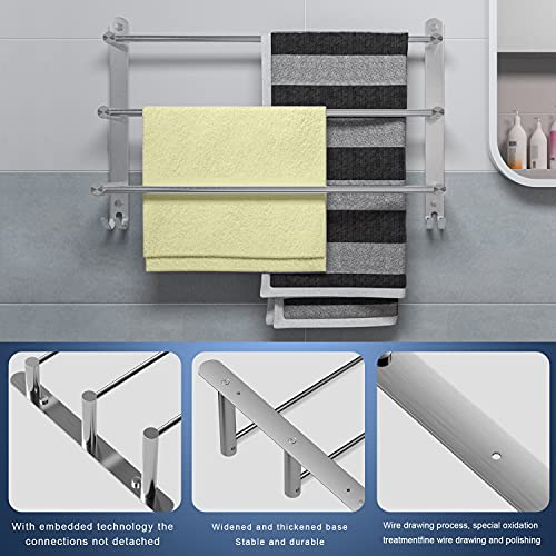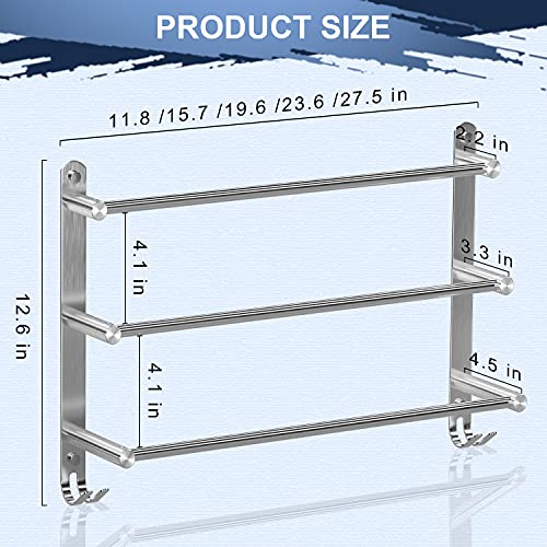 Specification: Handdoekenrek badkamer zonder boren wandmontage 304 roestvrij staal geborstelde badhanddoekhouder 60 cm handdoekstang 3-laags badhanddoekstang handdoekhouder voor badkamer keuken toilet
