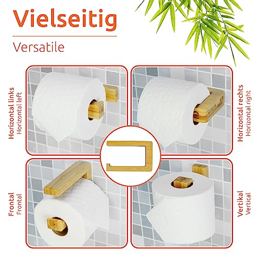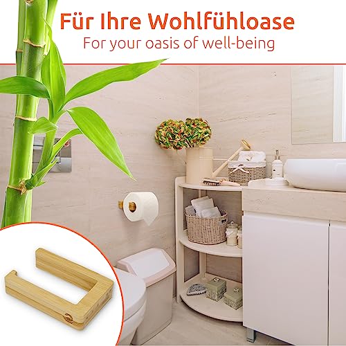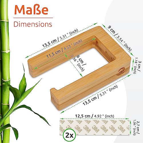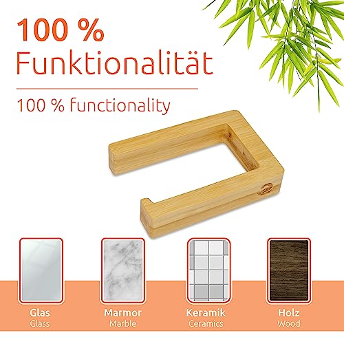 ECENCE 1x Toiletrolhouder van hout zelfklevend zonder boren natuurlijke bamboe toiletrolhouder Biologische wc-papierhouder